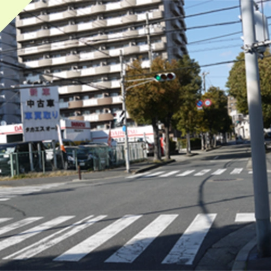 一つ先の信号のところに「タカエスオート本店」があります。
