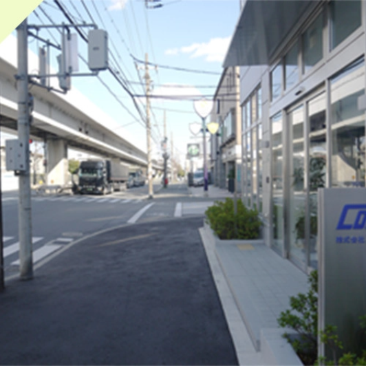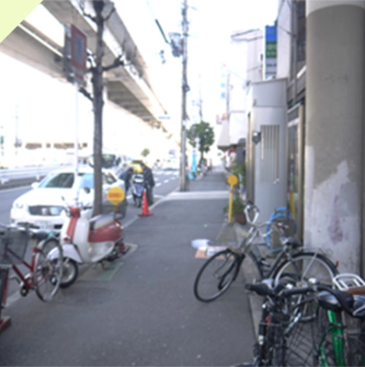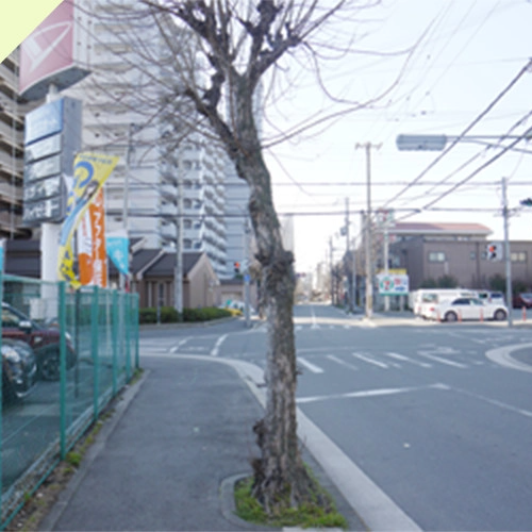 ニュートラムの高架下、(住之江公園通り)からお越しの場合、「ホテル グラッドワン南大阪」の信号をホテルの方に進んで下さい。*住之江公園駅側から進んで来た風景です。