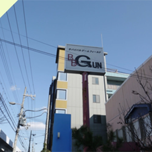 そのまま進行方向にまっすぐ進んで行くと、サバイバル施設の「BBGUN」が見えます。