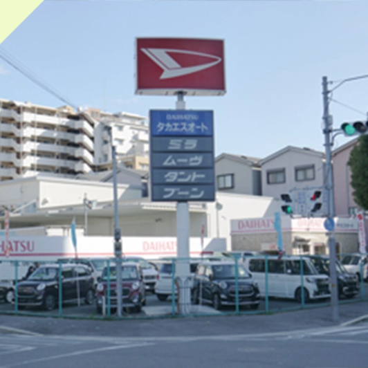 ダイハツ店の右斜め向かいに「タカエスオート本店」があります。